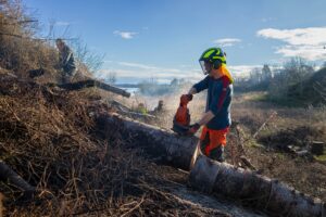 BNF jobber jevnt og trutt med rydding av sitkagranskudd, opprydding etter hogst og mindre trær på øya.