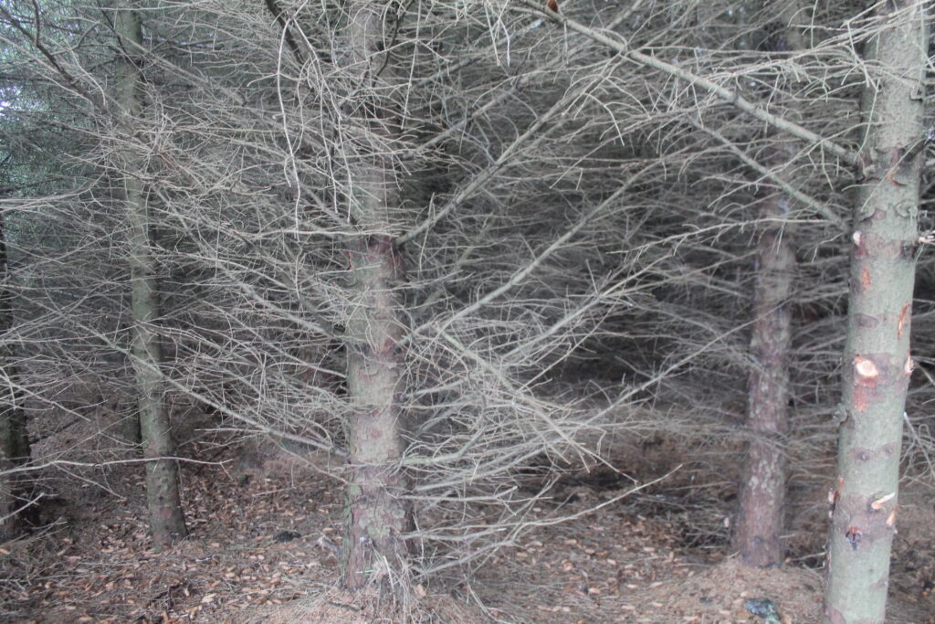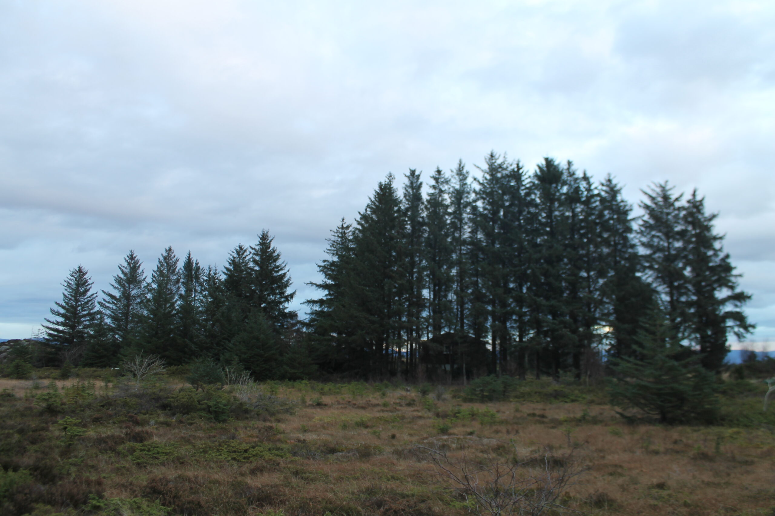 Der hvor det var åpent landskap med lyng, mose og einer blir landskapet sakte men sikkert erstattet av en stadig større mørk vegg med evigrønne bartre: Sitkagranen.